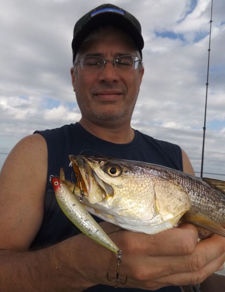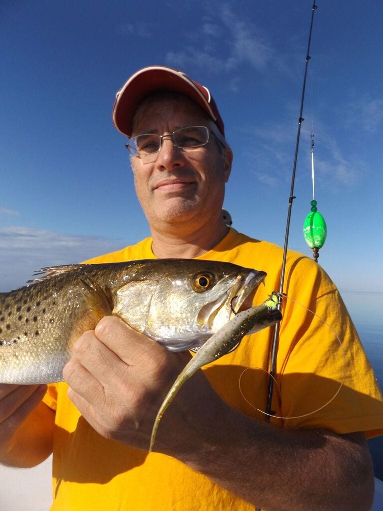 #1 Nick McCulloch of Atlanta, Ga. with a trout which took a “Copper Juice” Assassin 5”, under an Original Cajun Thunder, 12/1/17.