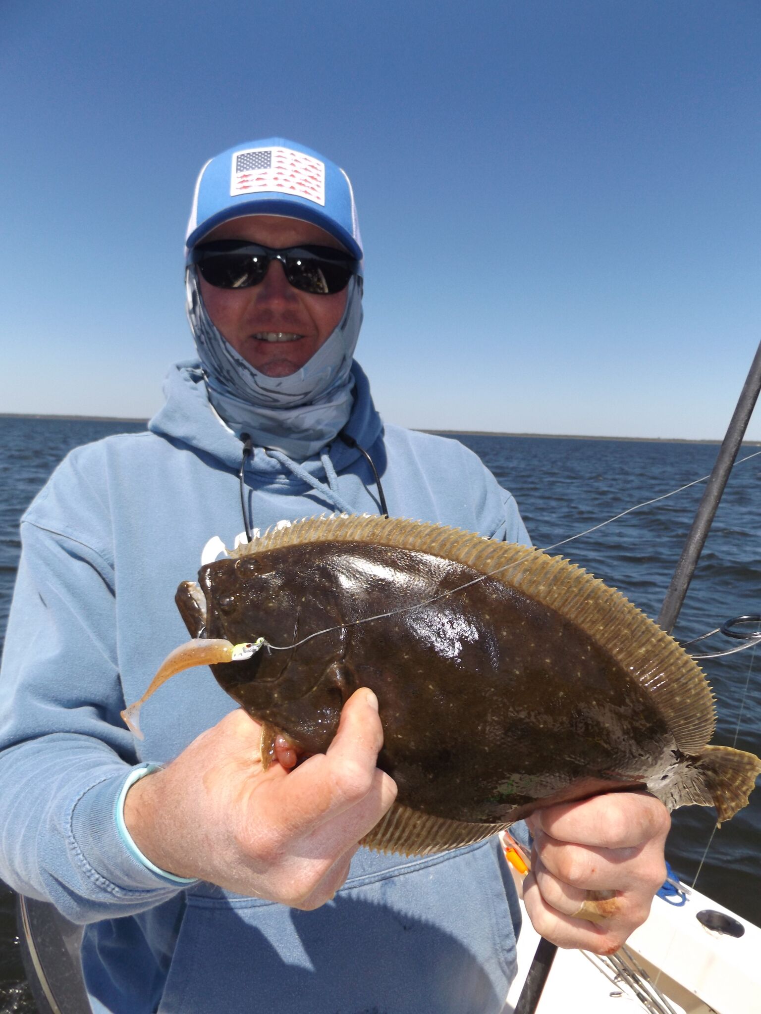 1157 Jud Alexander of Chattanooga, Tennessee with a flounder which ate an Elite Shiner from Assassin in the Wakasagi pattern