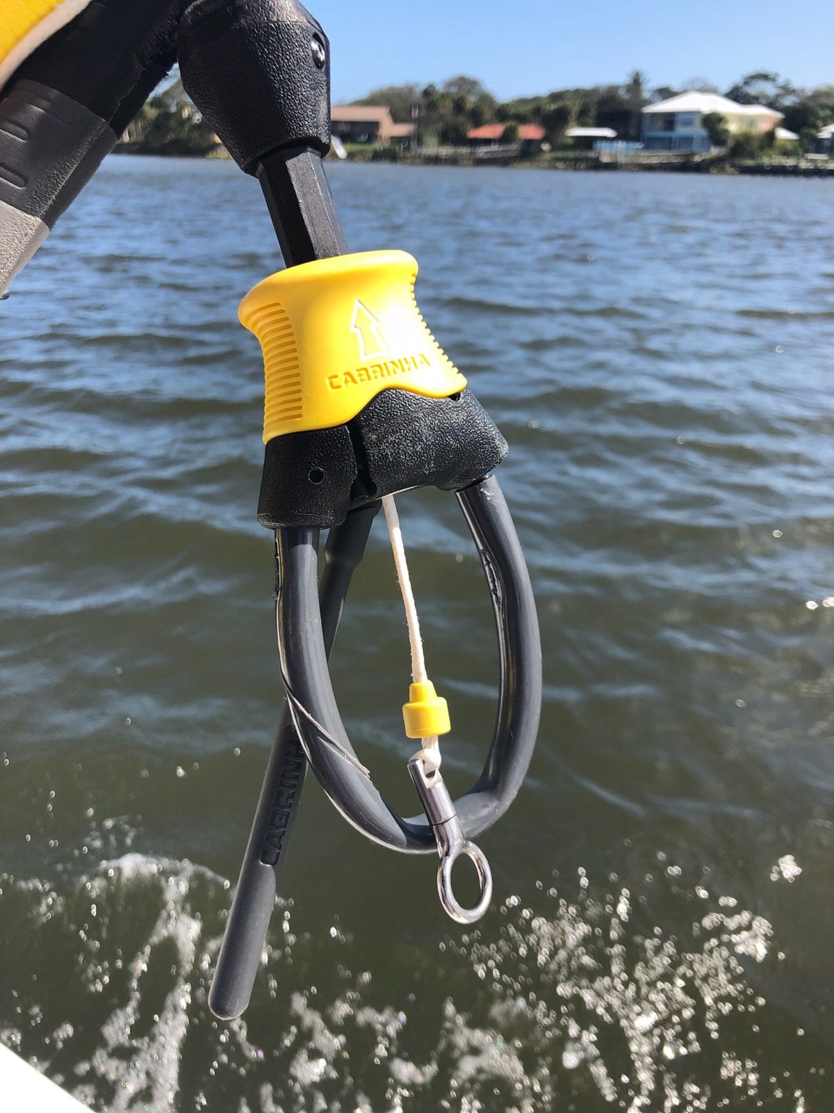 In very rare cases the main release is not enough to avert the situation at hand. In this case there is one more release located on the end of your “safety leash”. This leash is connected to the “flagging line”, which is the one line that remains connected after the main release is activated. When activated, this secondary release will completely separate you from the kite/lines. It is important to note that the secondary release will do nothing without first pulling the main release.