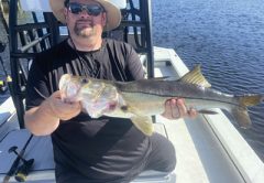 So, let’s start with a warmer month. If the weather continues to stay warm, with our water temperatures in the 70s, the snook bite will remain pretty consistent. Areas such as deeper creeks, residential canals, and deep cuts in the mangroves will be holding good numbers of fish. You can also expect to catch a few reds and trout.