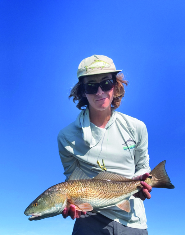 Stealth becomes everything in this ultra-shallow water. With winter clarity, the fish see and feel every mistake. Moving extra slow and using the wind to hide your approach makes a huge difference. Keep an eye out for birds wading on flats as redfish tend to be close behind feeding on the goodies they stir up. An eight weight with a floating line and a 9-foot 16-pound tapered leader with 2-3 feet of 20-pound shock tippet, dropping to 16-pound if need be. Around ten to twelve feet in total.