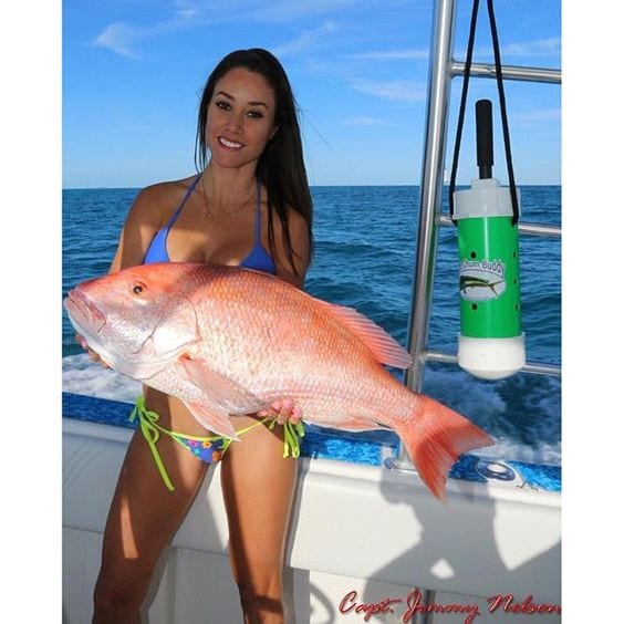 Luzia shows off a beautiful red snapper caught with the help of the The Chum Buddy. Check out: www.fishingwithluiza.com for more on this amazing lady angler.