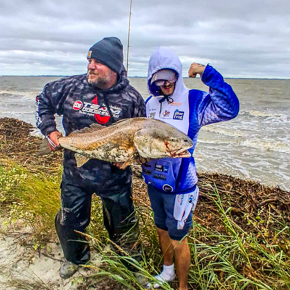 Kelee and her husband brought their kids to a Kids Can Fish Surf Fishing Camp, where they all learned the art of bull red fishing. Using the exact gear donated at camp—including a Daiwa Eliminator 6500, Rogue Reelz bull drum leader, and a Sinker Guy Sputnik—Kelee entered the tournament and landed the biggest surf fish of her life.