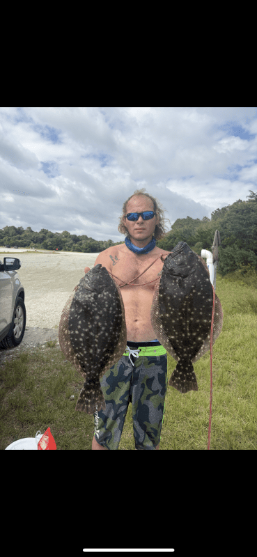 I was on the other side of sea wall my father said he just seen a massive flounder come off the bottom and attack a school of mullet coming by so he told me come over there and I dropped my Carolina rig straight down and let it drift for a second and boom immediately hooked up! Father netted it for me, second flounder came bout 10 min later rlly special experience