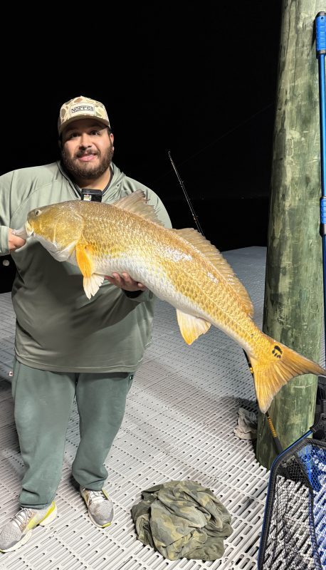 I knew we had bad weather coming in so decided to take a trip the Night beforeThe Redfish had been Eating Shad on the surface just blowing up on schools of baitfish so I knew Shad was the ticket and landed this fish of a life time He put up an amazing fight absolute Stud of a Redfish just amazingly healthy and super charged up the whole way
