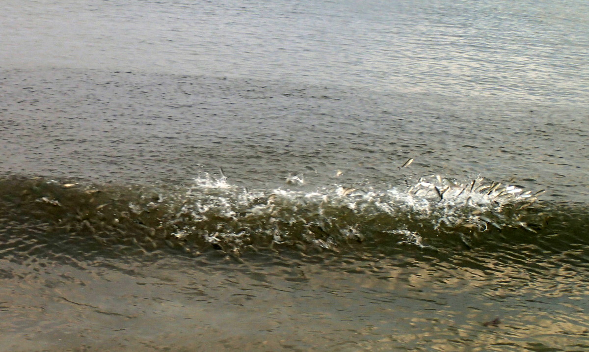 If you are lucky, hundreds of mullet leaping out of the water, fleeing hungry predators, will tip you off to the locations of the bait schools. Diving birds can also help you find the fish. On sunny days, don a good pair of polarized sunglasses (I use Hobie Hydro Series Sunglasses) and the bait pods will show up as moving dark spots in the water, looking much like the shadow of a small passing cloud. In the surf, good polarized glasses will help you spot mullet in the faces of incoming waves, and if you have a trained eye, mullets schools reveal themselves by subtle ripples on the surface that are often referred to as nervous water.