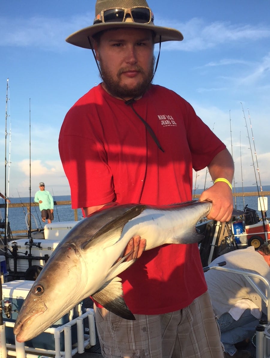 The bite has been slow recently for all the larger fish. However, hard tail have been doing pretty well if you’re using a sabiki. Some king mackerel have been biting in the early mornings on cigar minnows (live and frozen). Mahi-mahi have been sporadically biting throughout the day, and we typically get one or two every few days. On June 13th, in the mid -morning one of the regulars hooked up on a sail fish, he says it appeared to be five feet long. On the same day, tourists claimed to see a manatee! Even if fishing is poor, we always have a spectacular view here on Navarre Beach!