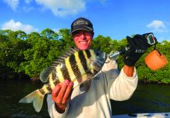 Artist Dale Werner w/ a huge sheepshead caught fishing w/ Capt. Barry Cuda.