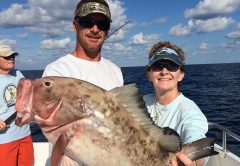 Donna caught this beauty of a red grouper fishing on Right Hook Fishing in Riviera BEAch. Pictured with mate, Eric Gates. They thought is was a shark but didn’t give up!