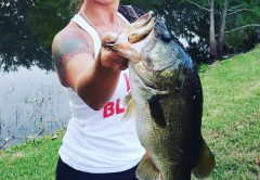 Dawn Williams with bass caught on artificial lure