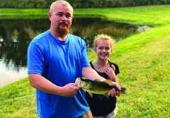 Emma MacVicar, 10yo caught her first fish ever, w/ a little advice from her proud dad.