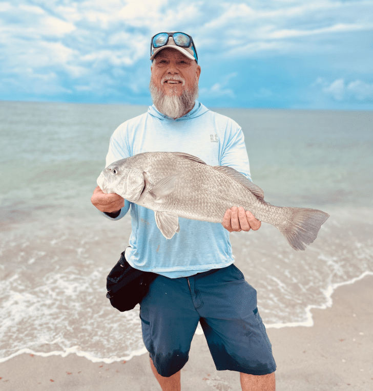 Sometimes I just need a beach fix. I enjoy walking along the beach, looking for a fishy area or fish activity along the shore. One Saturday, I had a window during the morning that I could go fishing for a few hours. I headed to Manasota Key to fish along the beach. The weather has been beautiful and there are many beaches in Southwest Florida that have easy access for anglers. I love fishing the trough along the surf as I walk the beaches. I didn’t have any expectations on this day, I just needed to be on the beach fishing the surf. Spending time fishing the beaches doesn’t require a bunch of equipment. Usually, I have a spinning outfit and a small backpack with tackle, lures, water and sunblock. I had a limited amount of time, no need to haul a ton of equipment for this type of fishing. I typically start with a jig and paddletail, and depending on the conditions, I will make changes. I like to have a selection of jigs ⅛ oz to ½ oz which usually will help me to adjust depending on the tides and surf conditions. Fishing along the beach is really not much different than other types of fishing. I’m looking for points, blowouts, bait pods, structures that can hold fish along the surf. Whether I catch fish or not, spending a beautiful morning along our beaches is a blessing, one of the many reasons I moved to this area after I retired. Luckily this fishing day was successful, I was hoping to run into a few snook but instead I caught a few flounder, and a nice black drum, sheepshead and ladyfish. There were big schools of bait and the fish were hanging around the bait pods. It took a while to figure out how to get a bite, but I love that challenge. The morning along the surf was exactly what I needed. Hopefully many of you will find a morning or day to get your fix, good luck and keep casting!
