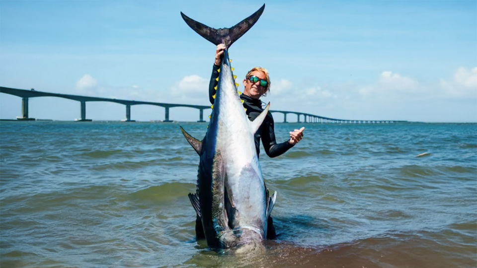 Without a traditional fishing boat’s stability, Hicks was forced to battle the tuna using raw strength and grit.