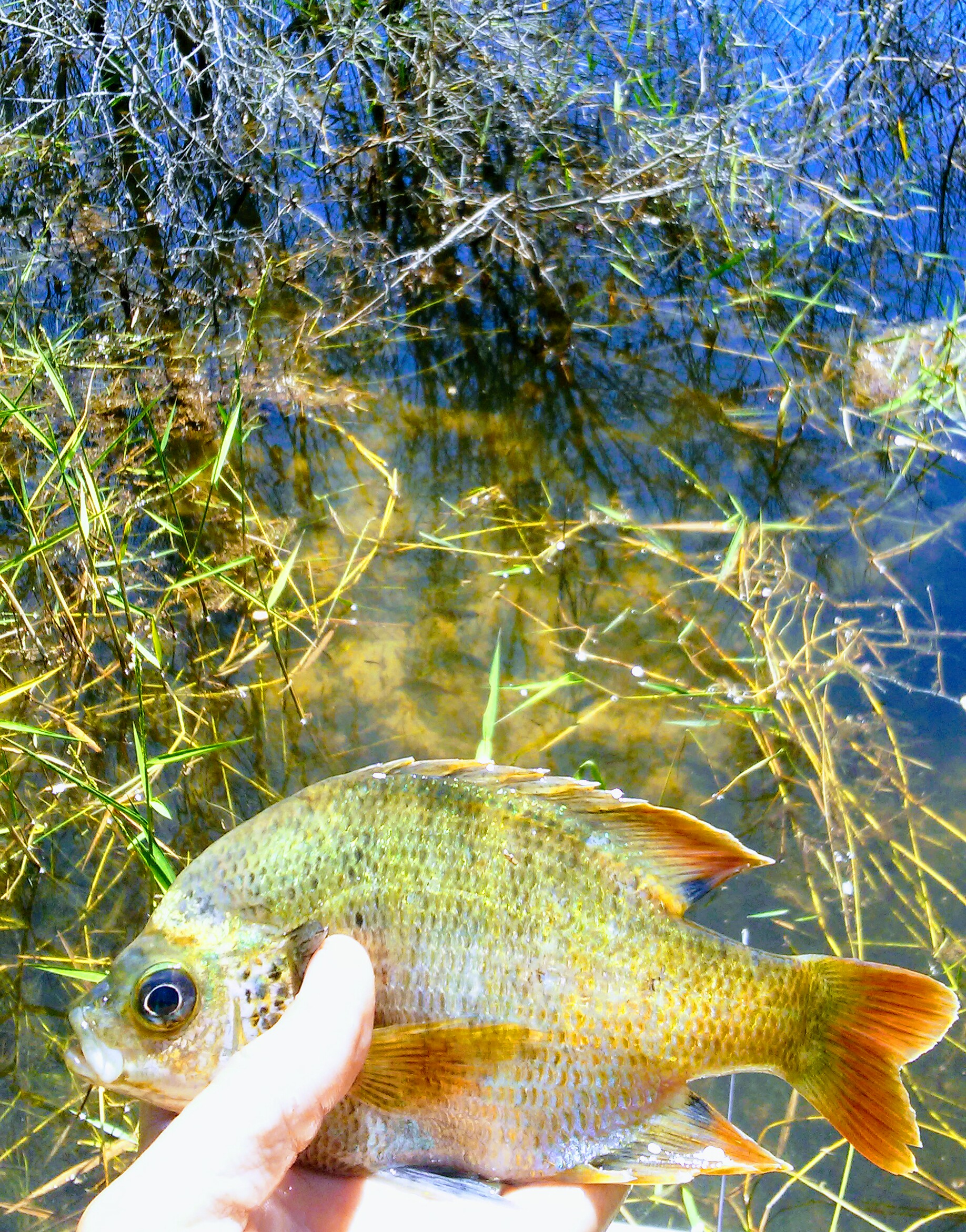 If you are fishing in direct sunlight, steadily move along, and pitch to every bit of cover. After getting a few bites, you’ll begin to notice successful patterns. Lilly pads, brush-piles, or even trash from careless jerks, can all have groups of fish hiding underneath. Tip: Bream bedding areas actually load up more and more, as the sun gets higher. These areas will be in 2 to 4 foot depth, with grass or structure beside them, but not above. Note: The amount of big bedding blue-gill this year is, by far, the most I’ve ever seen.