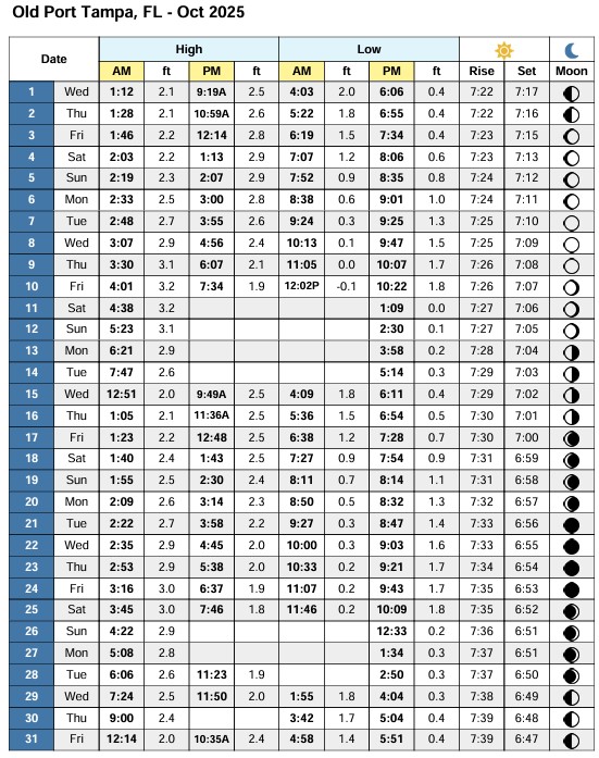 Old Port of Tampa Tide Table October 2025