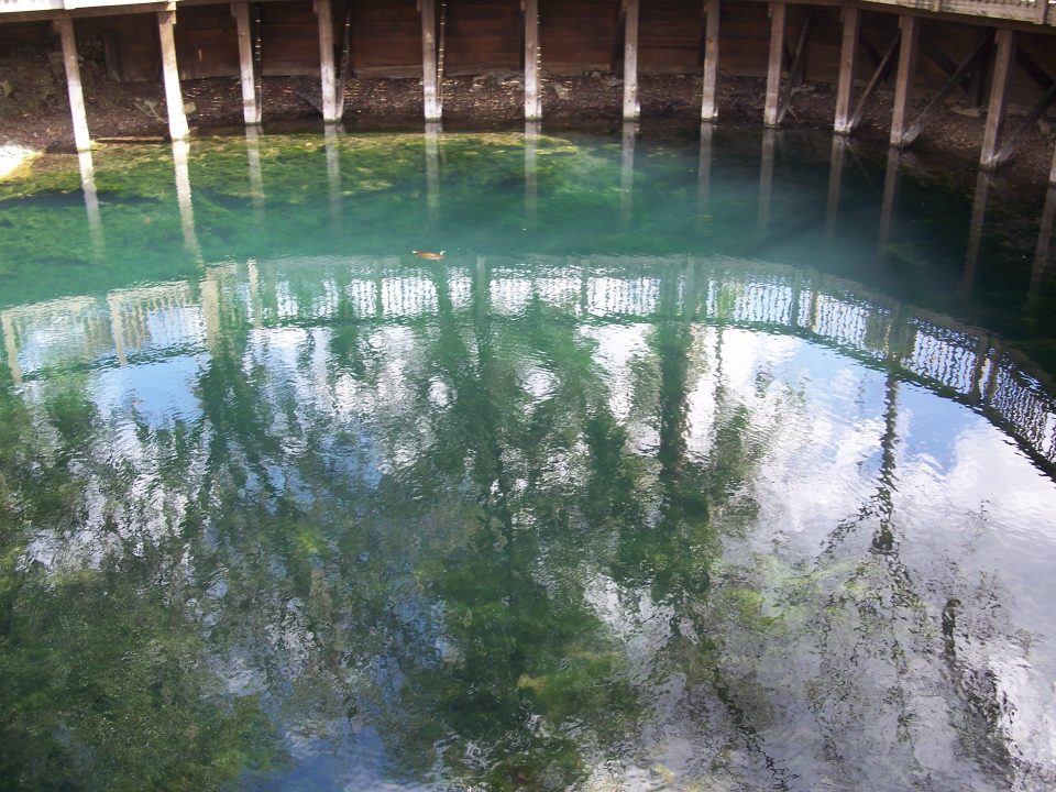 From Branford south, ground-water contributes seventy percent of the flow of the river, while surface run-off contributes thirty percent. During floods, the springs actually reverse their flow, going back into the aquifer. Below Branford, the Santa Fe River joins the Suwannee as the last of three rivers to add to the main river’s flow and strength. Branford Springs is a second-magnitude spring, with a flow of 17 cubic feet per second.