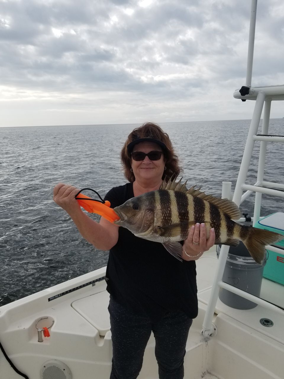 Pic#3-Robin Thompson has a nice sheepshead caught near structure.