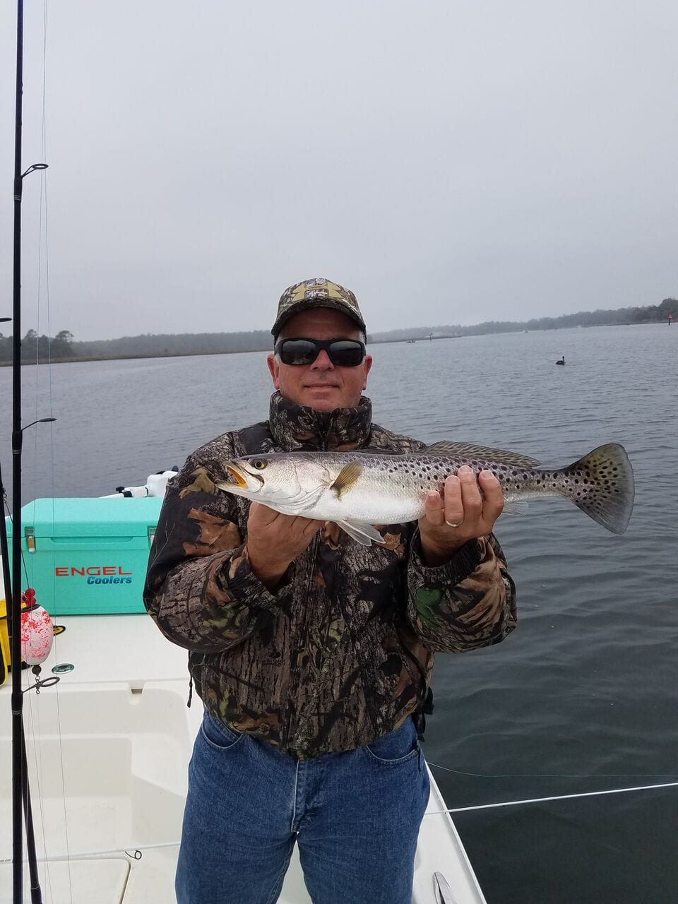 Pic#3- George Perez was throwing an artificial shrimp lure when this trout showed up.