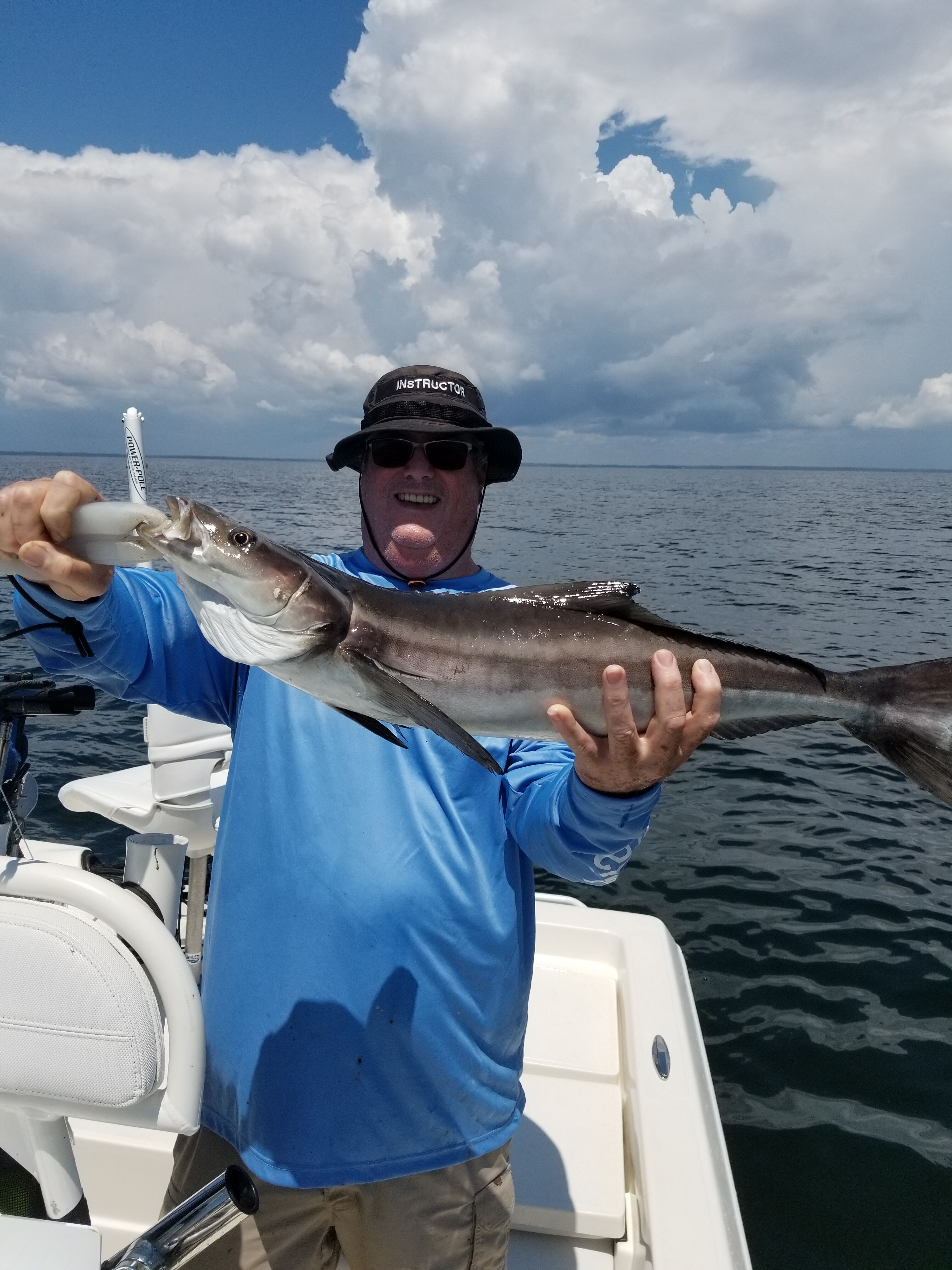 Plan ahead for the afternoon showers and listen for thunder and get off the water before any lightning gets close. If you do head offshore the baitfish, like greenies and pinfish are still around so put them out on a flatline or bottom rig and be ready to battle anything from a kingfish to a shark. When passing any buoys or channel markers keep an eye out for a cobia too!