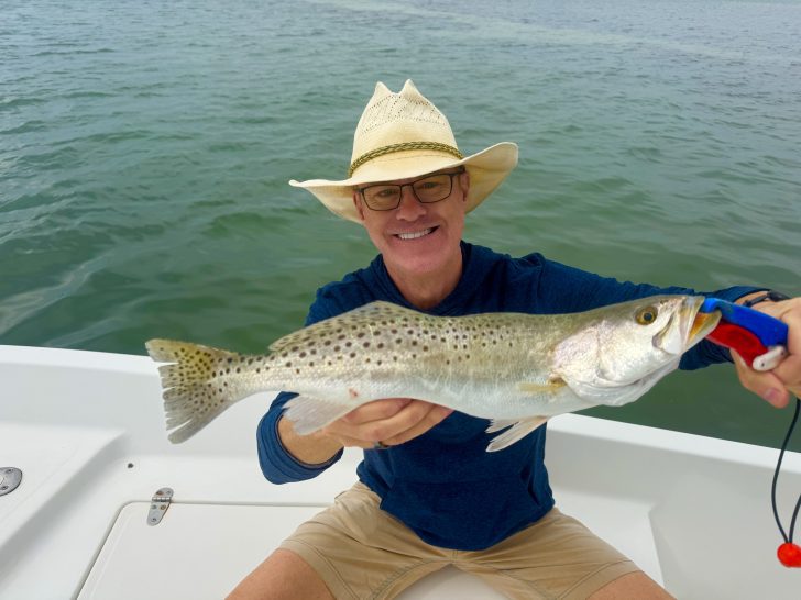 Some of the flats will have deeper waters, deep holes or a deeper channel adjacent to them, and those areas will usually hold fish during the night. The fish will drop into those areas, because it takes longer for the deeper water to cool off. The flats will cool off fast once the sun goes down, and even faster if it is windy. The next morning, fish in those deeper areas and make sure your baits are getting all the way down to the bottom where the fish are. Dark muddy bottom holds fish, because the dark mud heats up during the day and retains some of that heat longer. If using artificials, I like to throw a 1/4-ounce jig head to be able to cast farther but, also, get down to the bottom where the strike zone is. Now, on those warmer days we hope for, the shallow flat next to the deep water will heat up a lot faster, and the fish will put on the feed bags and roam those flats looking for a meal. If you spot a snook, trout or redfish, do not cast too close to them, as you will spook them in that shallow water. Instead, cast ahead of them in the direction they are swimming, and let them find your bait for better success.
