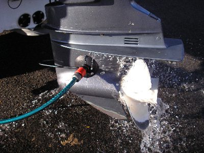 2) Turn on the water and allow it to flow 10 minutes. Again, check your owners’ manual to find out specifically if you should run your engine at idle while using the flushing port or not.