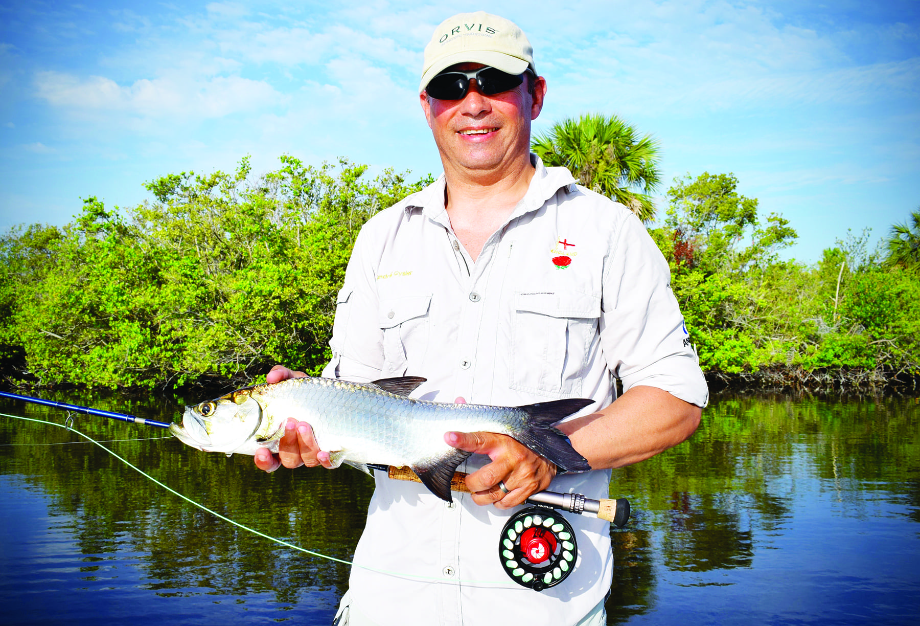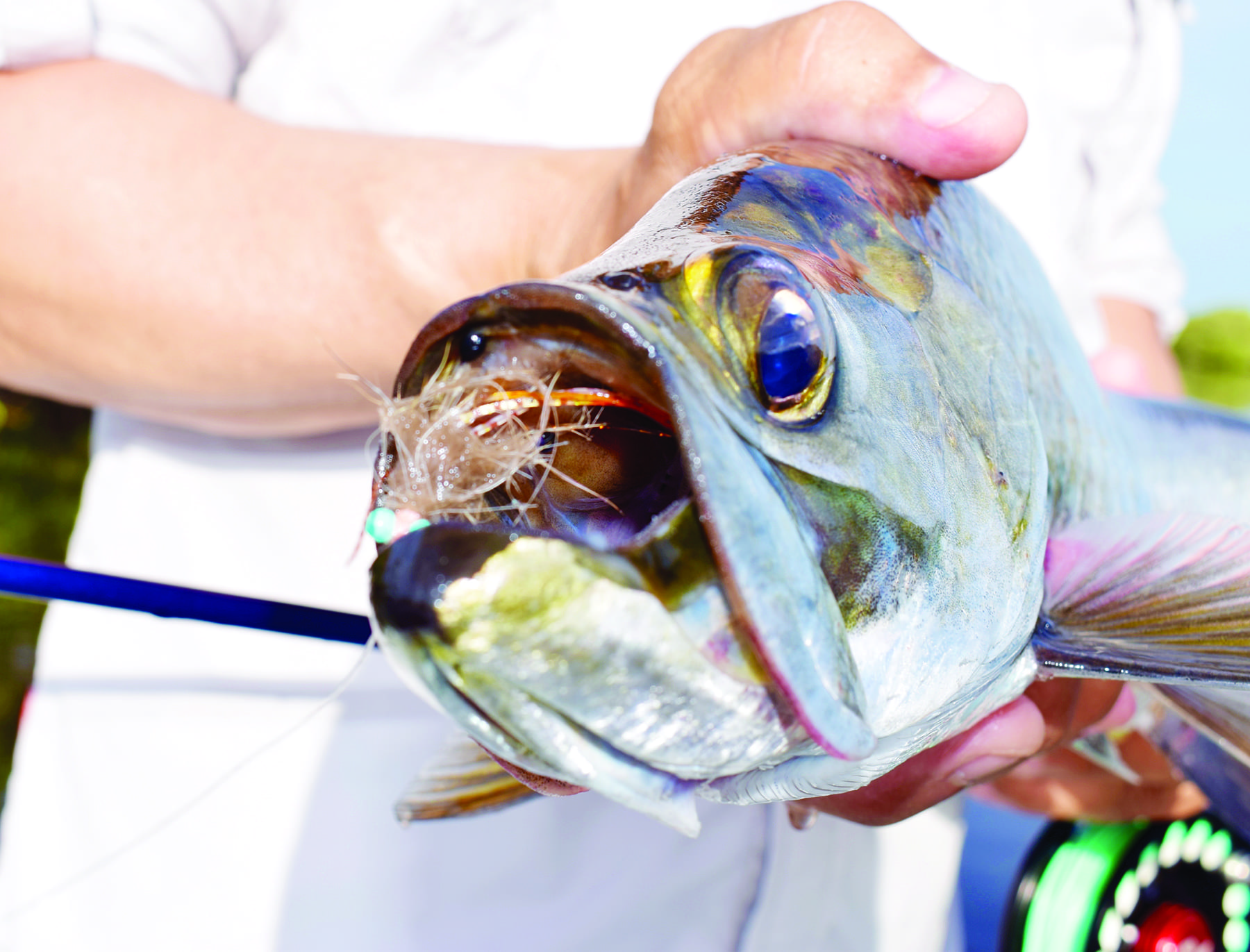 Now that we are ready to go, let’s talk about landing these magnificent fish. Remember that in the summer months, our water temperatures rise, and as a result, there is less oxygen in the water. Because of this, Tarpon will “roll” where their backs, dorsal fin and tail come out of the water to take in fresh air. This rolling action is what I look for on the flats when in pursuit of Tarpon. Once located, cast out in front of the Tarpon and begin stripping your fly. In order to trigger a bite, you must put your fly in front of the Tarpon. They need to see the fly move, and it must be right in front of their face. This is why I call Tarpon “my personal favorite frustration.” You may make the perfect presentation, but be patient as they don’t always eat. Once a Tarpon eats, they will turn their heads, the line comes tight and then you must strip set to set the hook. Strip setting prematurely will only result in pulling the fly out of the feeding Tarpon’s mouth. And just the same as using a light tackle spin set up, when the hooked fish feels the tension of a set hook, they will propel themselves out of the water, shaking their head back and forth violently. This is when you will want to implement a Tarpon fishing technique called ” Bow to the King” which simply means, pointing your rod tip at the jumping fish. When you bow, or point your rod, you are allowing slack to form in the line. This is important because when a Tarpon is airborne, shaking its head, tension in the line will cause the hook to become dislodged, and you will lose your fish.That is known as jumping Tarpon. “Bowing to the king” takes some time to perfect but will greatly increase your hook-to-catch ratio. Also line management is very important to pay attention to as your fly fishing.If the tarpon surges and takes line, and your line is tangled or caught on something, it could result in a broken line.