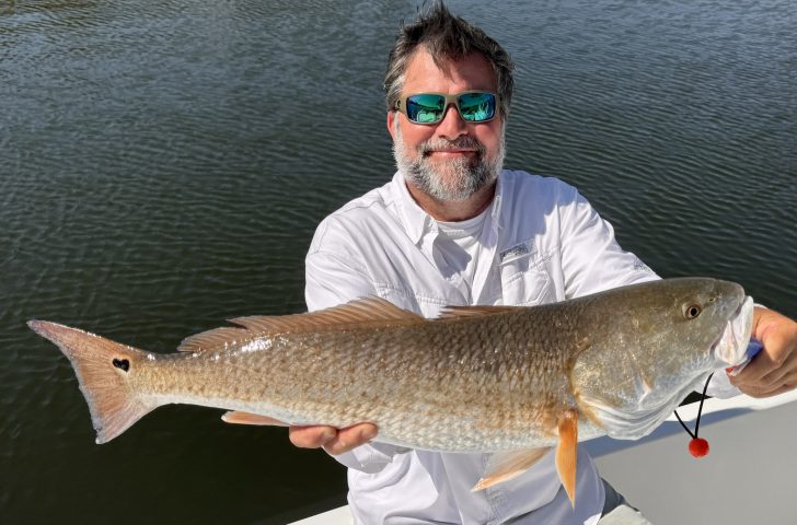 Many times, in places like this, redfish will follow the tide in as it comes up. If you can get to the spot and set up before they get there, they will be most complacent and happy to eat your offerings. The worst thing you can do is chase the school of reds–it will give them lockjaw. If you spot a school, get in their pathway, anchor down and let them come to you. Start throwing out live chum and cut bait to get the water by your boat to attract them to you.
