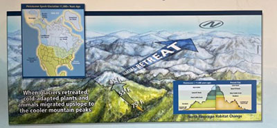 The Blue Ridge Parkway Visitor Center at Craggy Gardens has an excellent display about Sky Islands; why they support species that originated from northern (boreal) regions of the North American continent, and why these habitats are threatened by climate change.