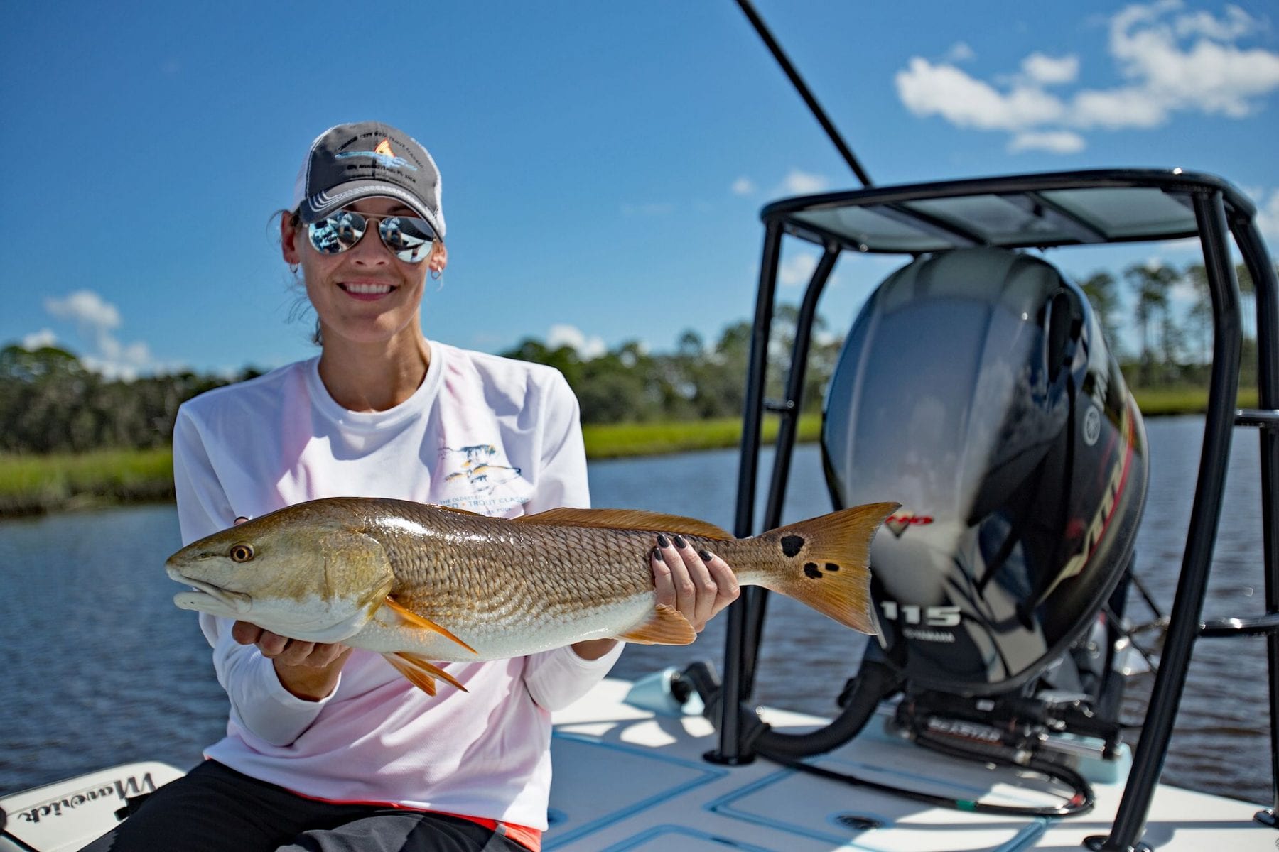 With water temperatures cooling down this month, look for the inshore fishing to heat up.  For me, the next few months are the most exciting time of year to target reds on the flats and creeks. I’m actually hoping for a cold-ish winter this year. As much as I don’t like freezing my butt off, the cold temps will kill the algae in the water, resulting in gin-clear, sight-fishable awesomeness. It will be time to go to your favorite flat, put on your polarized Costa sunglasses, and start looking for fish. The creek fishing will be on fire as well. The redfish will push into the shallowest areas of the creeks on the low tides, to warm up and feed on small minnows and shrimp. This time of the year, you’ll get to sleep in, and wait for the sun to be out for a while to warm up the water.  Clearer water can mean spookier fish, so downsize your baits/lures for a more stealthy approach. On extreme low tides, the redfish, trout and flounder will get schooled up in area creek holes. A live shrimp or mud minnow tossed into the depths can’t be beat.