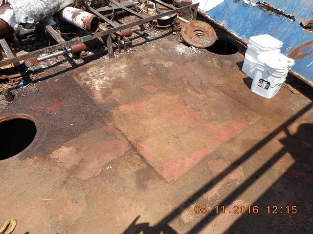 The interior of the Kathleen will be steam cleaned to remove dirt and debris that has been left over from nearly 60 years of active work. Once the tug is cleaned, McCulley Marine Services will load clean secondary concrete into the vessel so that it will be stable at shallower depths.