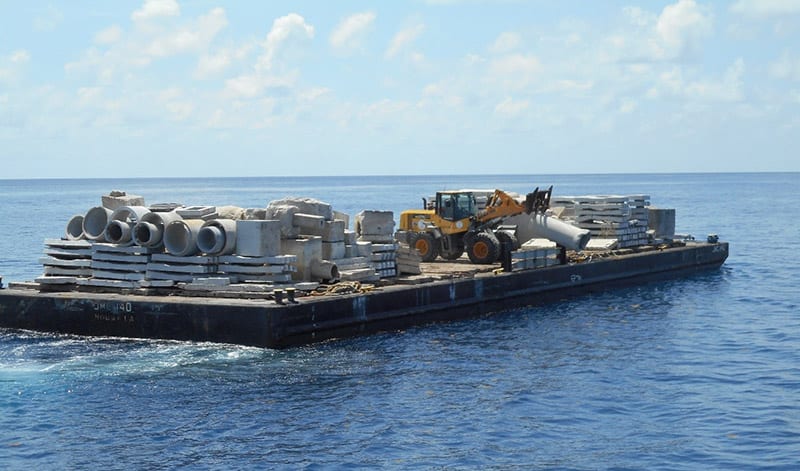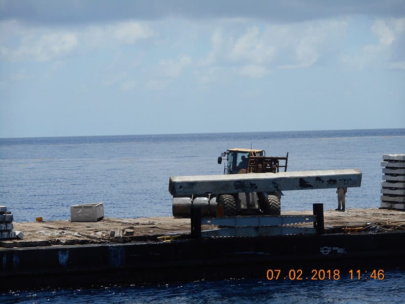 On July 2 and July 13, 2018, McCulley Marine Services, Inc. deployed more than 1,000 tons of diverse concrete structures in 120-foot depth on the County’s permitted Fort Pierce Sportfishing Club artificial reef site. Currents at the planned 170-foot depth were too fast to safely deploy. The deployments were assisted by C&T Marine Services to create a reef with at least 14 feet of profile and were funded by the Florida Fish and Wildlife Conservation Commission’s Artificial Reef Program.