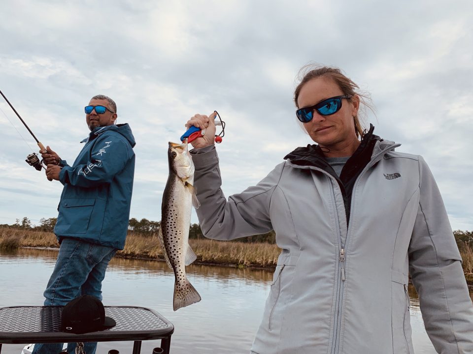 The trout bite in the river has come and gone. Maybe a few stragglers in the river, but most are in transition. Simply means they are on their way to the flats! Not sure if they will make it this month, but watch the water temps. If the temps reach 67 degree’s, maybe they show. Usually, the best bite holds until 74 degrees. Until then, creeks and oyster bars are the ticket.