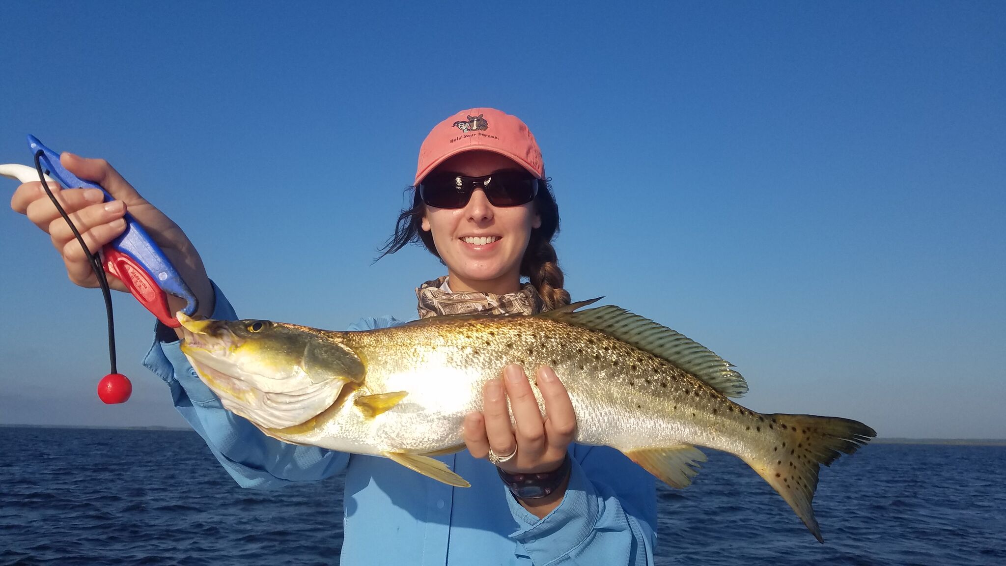 I would normally send folks east of the lighthouse to catch reds, but this year east was DOA! The heavy rains crushed the east. Most redfish action was west around Piney Island. Piney can be crowded, so keep fishing until you find them. Post storm, might have cleaned up the east rocks. Its worth investigating. The rocks always have fish in the fall. Topwater is good, as long as the temps stay above 70 degrees. I am guessing all the grass was washed into the marsh. If not, switch to spoons and gold paddletails.