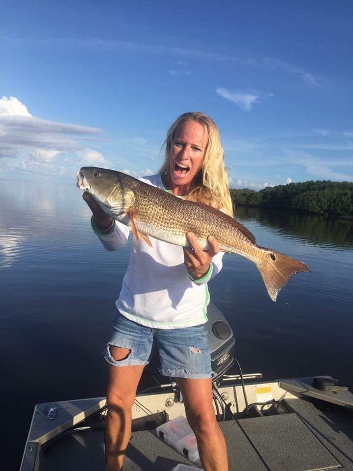 People ask me all the time how I came to be a captain. Here is my story. I have been around boats and been on the water for the last 15 years. I was always sun bathing on the bow of the boat or trying keep the children entertained. I never really had an interest in fishing or being a guide because it seemed to be a man’s sport. A few years ago, my then 11-year old daughter said to me that she wished we had a boat, but only men drive boats. That comment lit a fire in my soul! Two weeks later I bought a 16-foot aluminum boat. I went down to the boat ramp by myself and learned how to back the trailer. There was no one around and I spent 3 hours going back and forth back and forth. I jack-knifed it a couple times; one time the boat was actually next to my vehicle while still attached, but I figured it out. I stayed up all night learning the rules of the water. I looked online to find out exactly what I needed for safety on my boat, and I went to my local big box store and got everything I needed from life jackets to a fire extinguisher. The next day I took my daughter out on the boat for the first time. We went to the local bait store and asked them what we should use to catch bass. I bought two rod and reel combos, and some soft baits the store owner recommended. He even showed me how to rig it. So off we went. I was scared to death but I just went slow and easy. I found a grassy area right in the middle of the lake, and I thought maybe there would be fish there. We casted a few times and each cast was a nightmare of a backlash; our reels looked like rat’s nests. It took about two hours, but we finally got the hang of casting. We stayed out there all day and got no bites. We decided to head in and I found another spot that looked good. It was the middle of the summer and this was a nice little shady spot. I was right. I casted, and felt this amazing fight at the end of that line like nothing I had ever felt before. I reeled like my life depended on it, praying I would land that fish. I reeled it all the way in and my daughter grabbed the net and picked up that big 9.11-pound bass. If I would have had the money, I would have had it mounted! We were both screaming our heads off and making such a scene that if there had been any more fish there, they there weren’t after that. We were hooked. That was just the beginning. We went out of Crystal River to the Gulf of Mexico. Again, we stopped at the local bait store and started asking questions. It is awesome to me how helpful everybody has been in this endeavor. They told me to buy shrimp and soft plastics. I looked on YouTube and found Jeff Maggio, also known as Lunkerdog. He has videos on rigging, tying knots, what to look for to find the fish, etc. I watched every one of his videos! I caught my first redfish and the fever hit again. Since that day, my daughter and I have caught more bass, snook, redfish and trout than I can even count! The guides in this area are phenomenal. If they see you are grinding day in and day out, they will have your back out there. They want to see women succeed. My goal is to empower women, to see as many women running boats as there are men. Come on ladies. You can do it. I’m living proof!