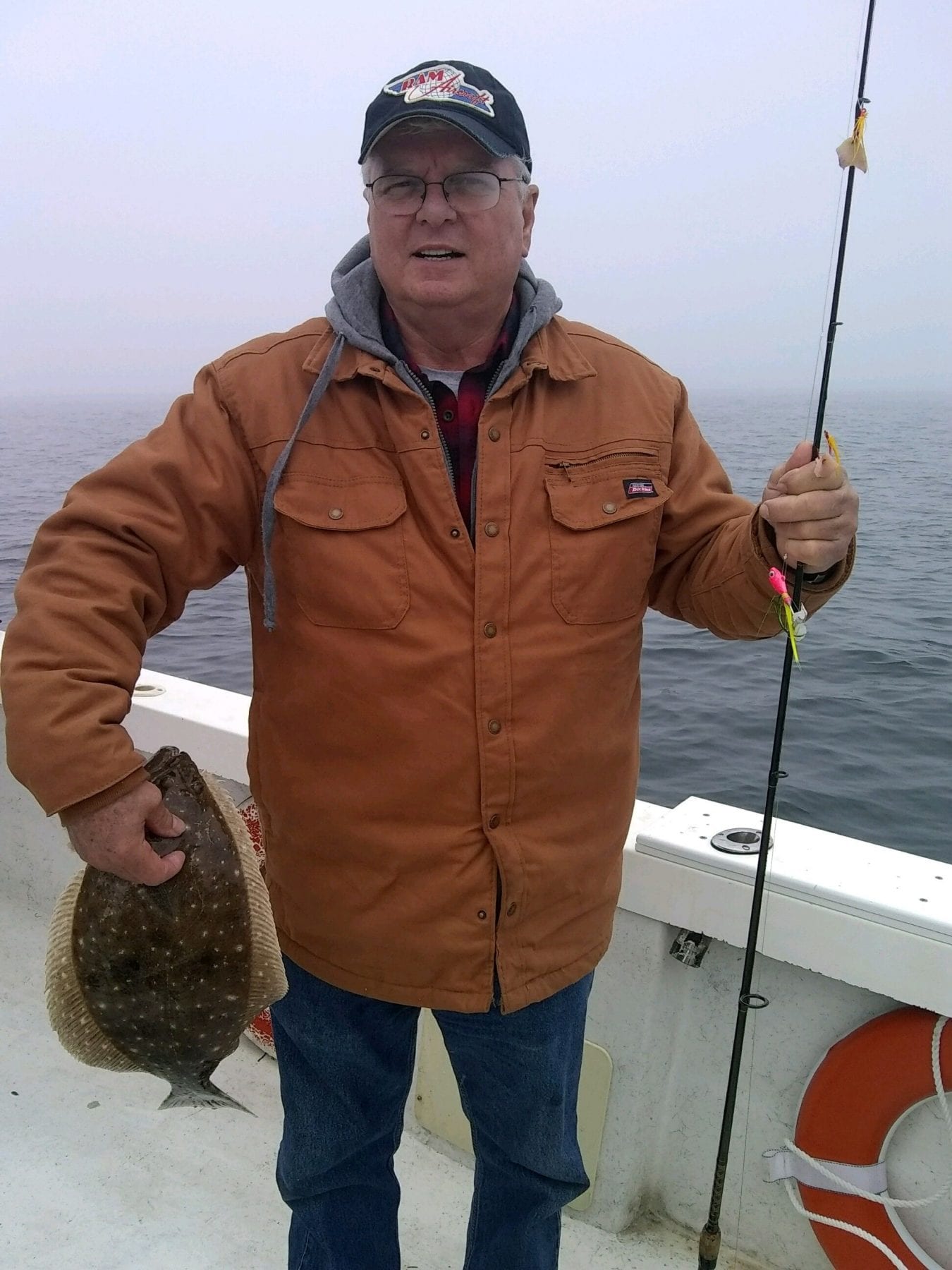 After fishing for sheepshead, bounce around hard bottom nearby, to pick-up sea bass with a couple surprise flounder.