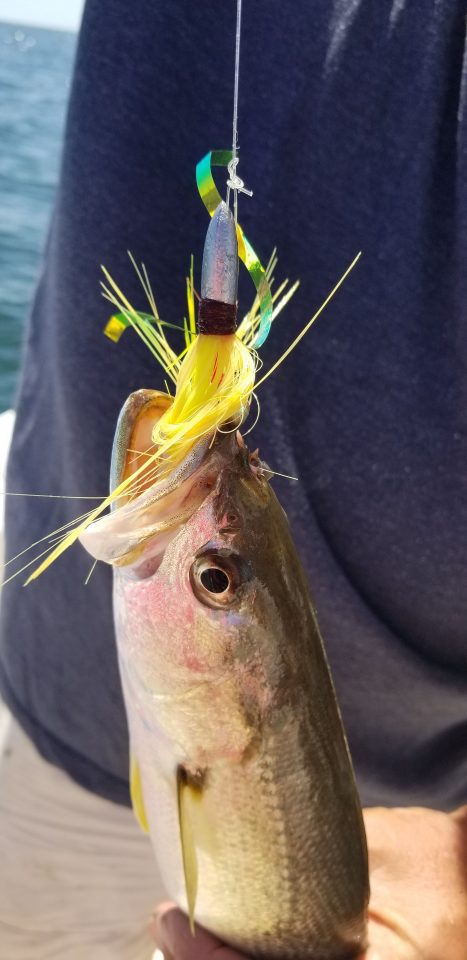 Sea bass and Florida snapper, aka white grunts, are all over hard live bottom taking any meat, jigs with meat, or any other thing you can think of that delivers a meal.