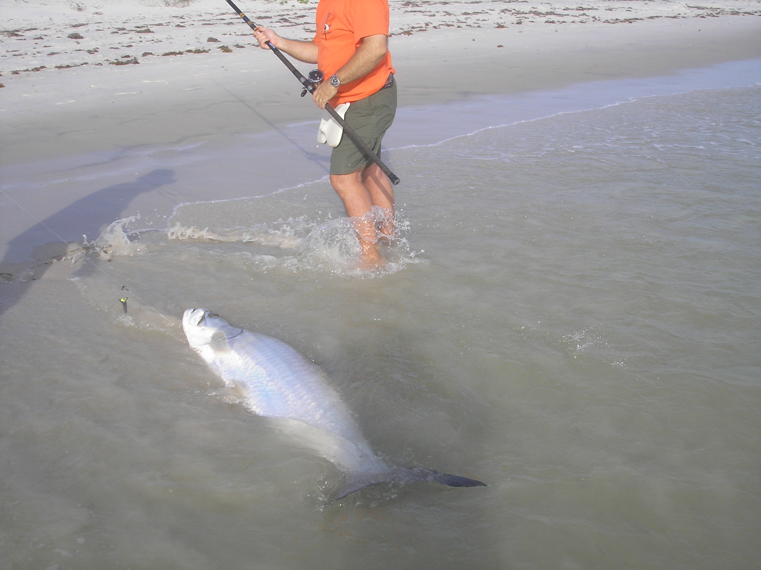 For tarpon, I’ve had my best success with fresh mullet chunks, or whole large live mullet, on a heavy-duty fish finder or sinker slider rig. You don’t get a lot of hook ups, but when you do, it is off the chart exciting! I’m amazed at how close to the beach that these huge fish swim, especially early in the morning or in the evening. I have even hooked them at night during the full moon, while soaking fresh mullet in the first trough.