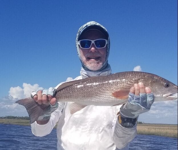 Now, hopefully by this time, I have a good-moving incoming tide, I have reached my limit on trout, because now is the time to go hit on some redfish and tripletail. I’m finding most of my hook-ups on them around the oyster beds on the coastline, and in some of the smaller rivers and creeks
