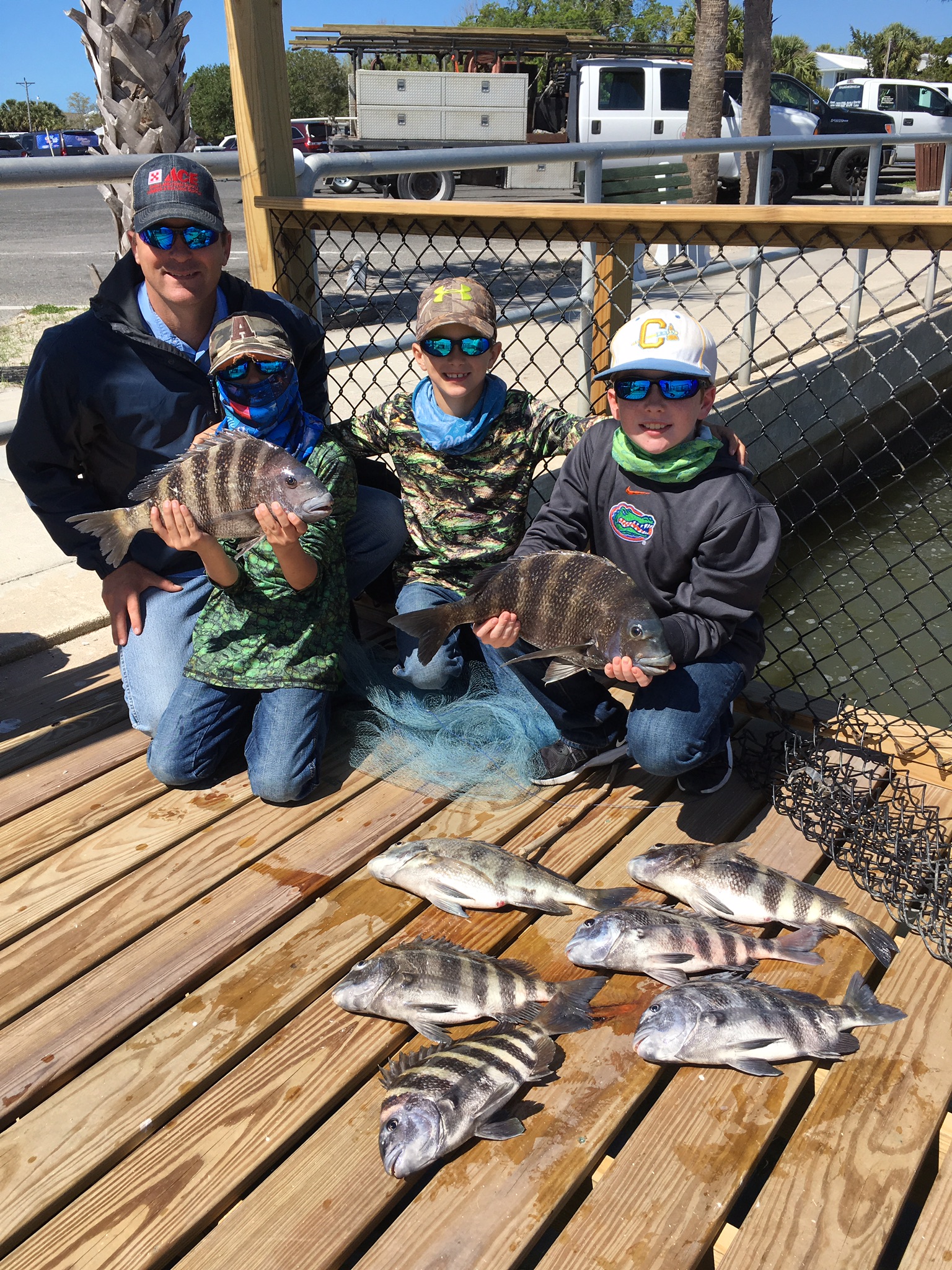 The sheepshead bite is pretty strong around the full moon when they are ganged up to spawn. The artificial reefs in 15 to 20 feet of water are loaded this time of year. A piece of shrimp or live fiddler crab will be your best bait.