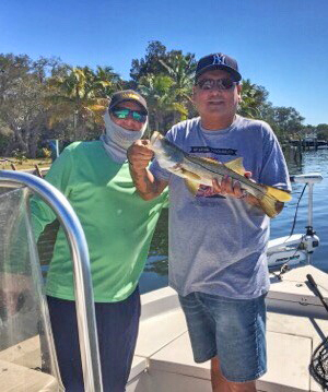 With the weather not getting too cold this winter the Snook were staged in their transition locations. We’re fishing around the mouth of the river and docks with good tidal movement and structure using white bait.