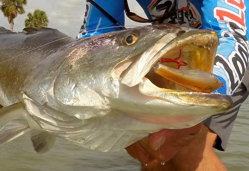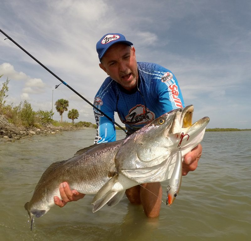 Gator is a name often used for seatrout over six pounds. That is a fine fish indeed, but I apply the term monster to double digit fish that top ten pounds. I’ve been blessed to catch three monster trout in my life. The first came on a Rapala X-Rap Walk, a large walk-the-dog topwater plug that is no longer made. The second ate a Rapala Skitterwalk, another walk-the-dog topwater plug. The third, caught just this last April, fell to a Zagaia Prima Gold Stick, a shallow running Brazilian made lure with a nice seductive darting action.