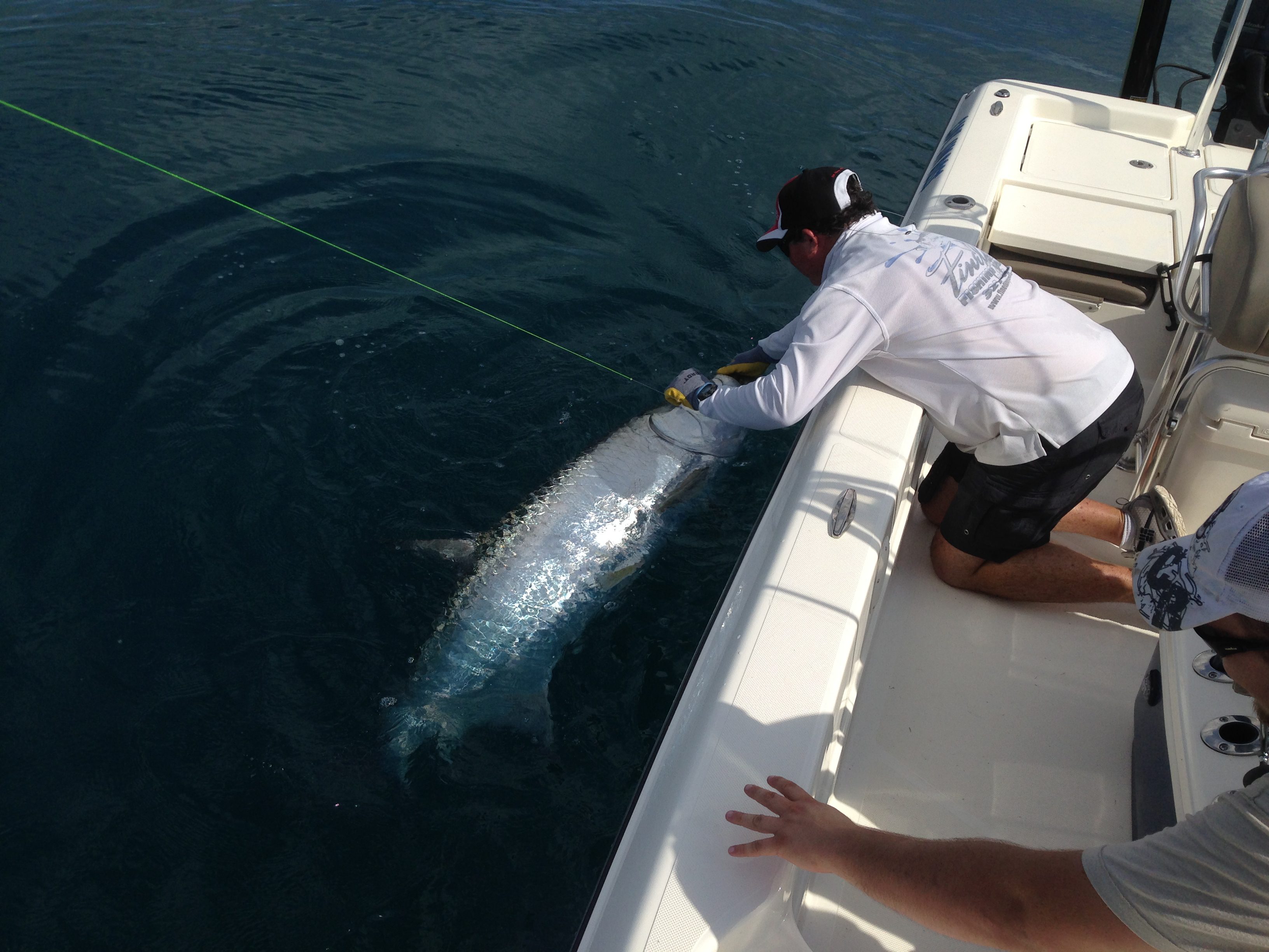 Ross says tarpon patrol our coast from May until October although a warm winter can kick off an earlier run. This year Ross found his first tarpon back in March. Although tarpon fishing can be good any time throughout the summer, Ross says the best month is June when the numbers are good and the fish seem to be more aggressive.