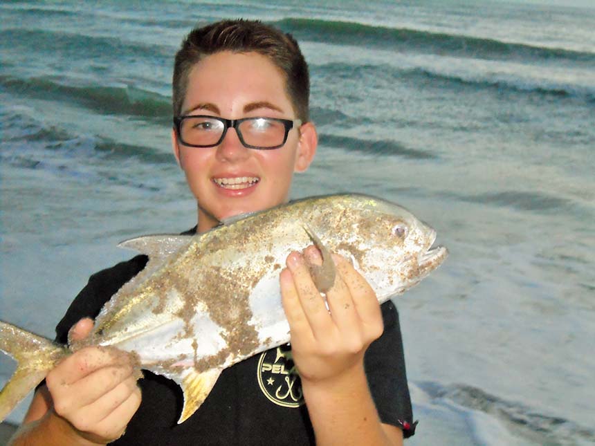 Jackson Doherty with a snook caught off the beach. PHOTO CREDIT: Chris Sharp.