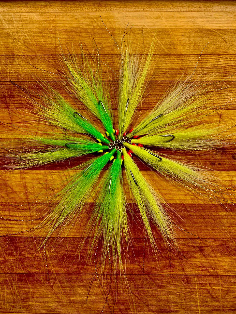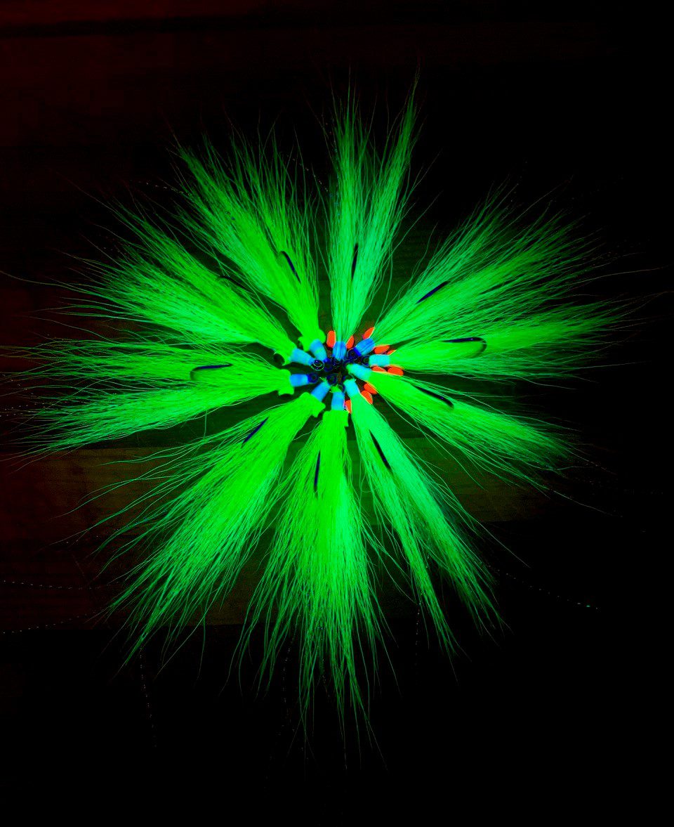 The selection of fly-tying materials in today’s market can be a bit overwhelming. Tying flies is not really a passion for me, unlike fly fishing and catching fish. It became much more important when I became a guide. Having the options to tie my flies the way I want and selecting the right amount of specific material makes me more successful in catching fish. There is always a lot of “hot and new” stuff out there to make our flies even better, but it usually takes time to convince me into new products. Ultraviolet and fluorescent fly-tying material became more and more important to me over the years. I started using it for my Atlantic salmon flies, especially tube flies. Seeing the success in such a hard fishery made me a believer. Later, I used it more often for my saltwater flies. Over the last couple of weeks while being at home more than usual, I spent quite some time looking up color charts for different depths and different light conditions and what I found, supports my belief. There may not be science behind it, but I’m a believer!